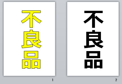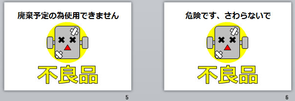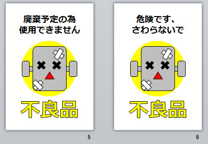 フリー、無料で使える「不良品」の貼り紙です。そのまま利用しても、加工しても構いません。実用素材としてご利用ください。