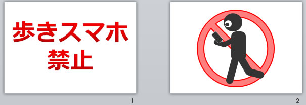 フリーで使えるパワーポイントの図形機能で作成したスマホながら歩きする人のイメージです。PPTX形式、PNG形式画像で作成しています。