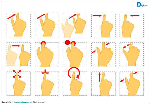 フリーで使えるパワーポイントの図形機能で作成した、スマートフォン操作イメージです。PPTX形式です。