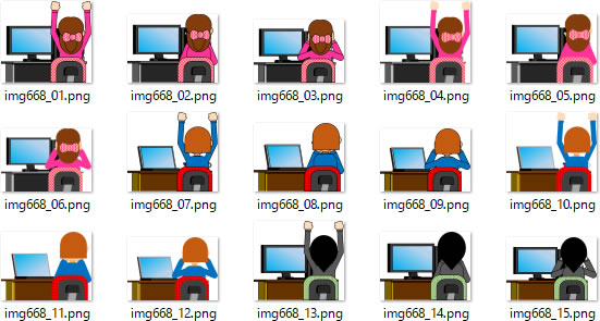 フリー、無料で使える持ち上げる、支えるポーズのビジネスウーマンのイラスト画像です。パワーポイントPPTX形式、PNG形式画像で作成しています。30パターンあります。