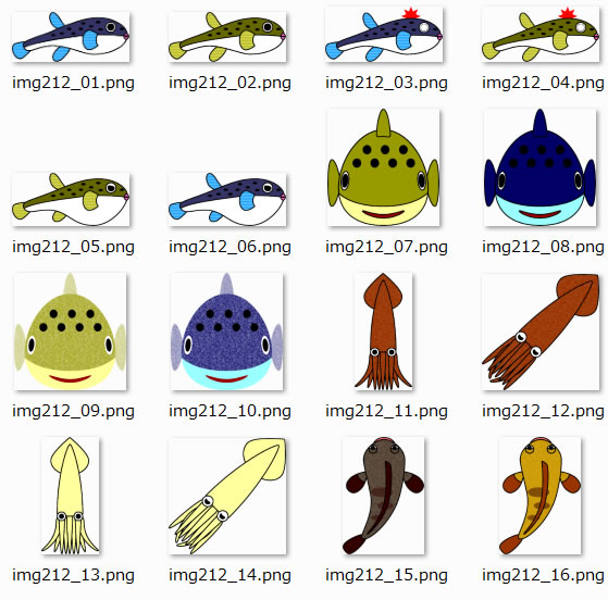 フリー、無料で使える主に海の魚のイラスト画像です。24種類用意しています。水に関する訴えや自然保護などを魚の立場で台詞をつけて表現するとリアリティのある面白い広告などに使えると思います。PNG32ビットの透明ファイル形式で作成していま ...
