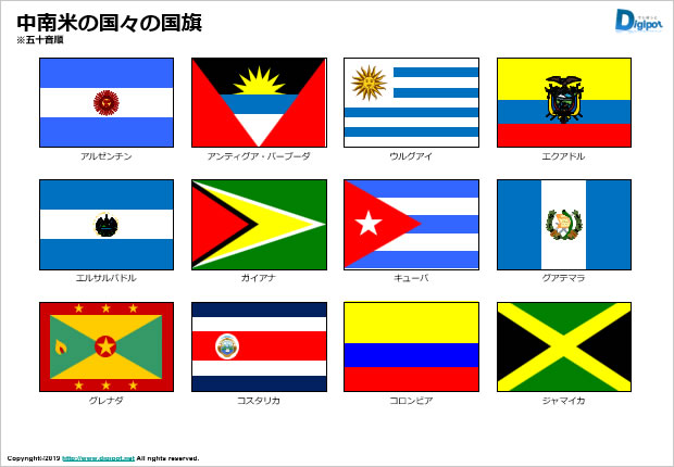 北米、中南米の国々の国旗のイラスト(エクセル)をダウンロードする
