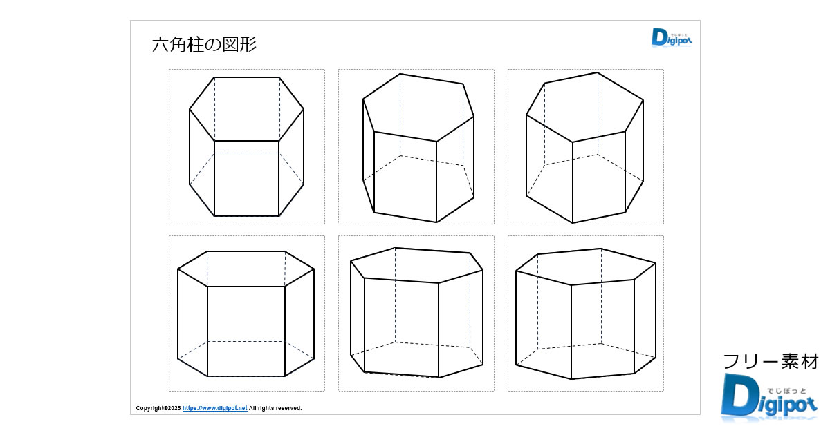 六角柱の斜め上から見下ろした図形です。学習素材等にご活用ください。
