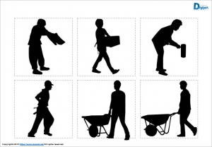 フリー、無料で使える工事作業員のシルエット画像です。パワーポイントPPTX形式、PNG形式画像で作成しています。12パターンあります。