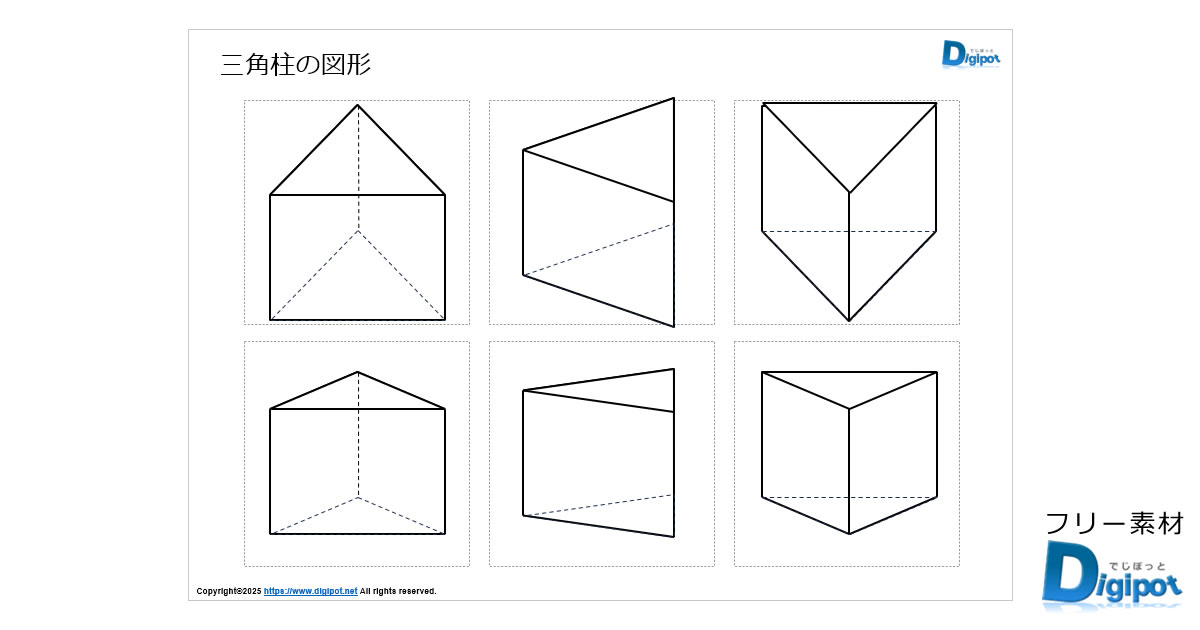 フリー、無料で使える三角柱の図形画像です。パワーポイントPPTX形式、PNG透明ファイル形式、エクセルXLSX形式、ワードDOCX形式ファイルで作成しています。