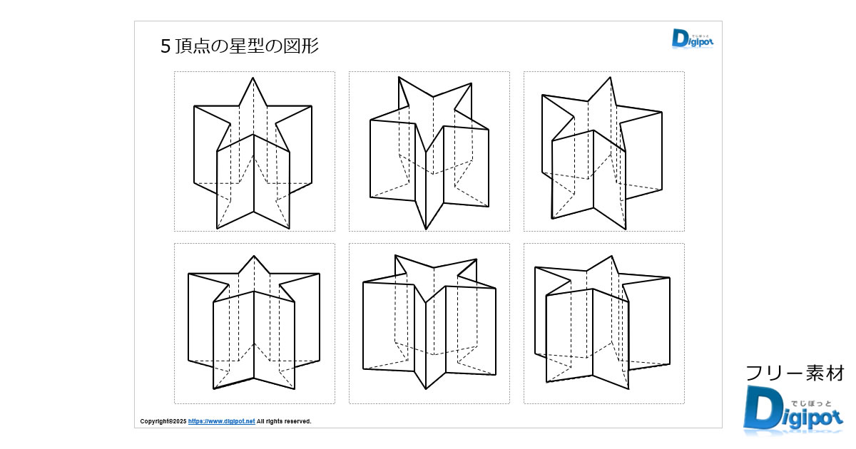 フリー、無料で使える5頂点の星型柱の図形画像です。パワーポイントPPTX形式、PNG透明ファイル形式、エクセルXLSX形式、ワードDOCX形式ファイルで作成しています。