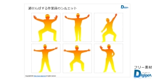 フリー、無料で使える通せんぼする作業員のシルエット画像です。パワーポイントPPTX形式、PNG透明ファイル形式、エクセルXLSX形式、ワードDOCX形式ファイルで作成しています。