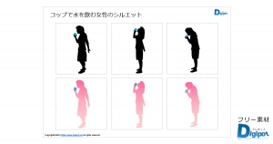 コップで水を飲む人物のシルエット(パワーポイント/PNG画像)