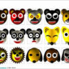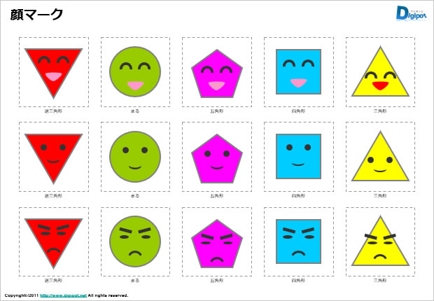 いろいろな形状に顔の喜怒哀楽を表示させています。評価ランクや感情を表すアイコンとしてご活用ください。