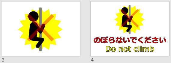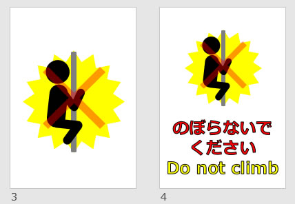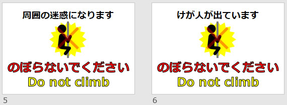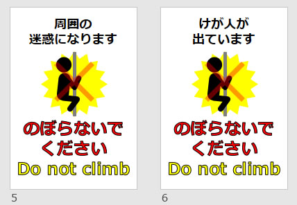 のぼらないでください Do not climbの貼り紙(パワーポイント)