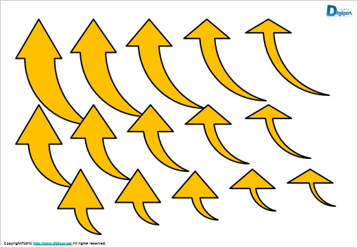 あるポイントを目立たせるための矢印です。まっすぐ引っ張り出しているイメージです。横からや下から引っ張り出したい場合は、矢印を回転させてご利用ください。