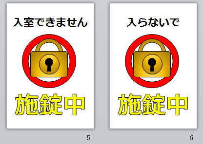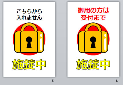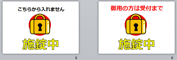 施錠中の貼り紙(パワーポイント)