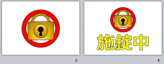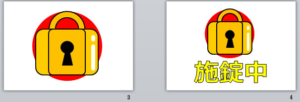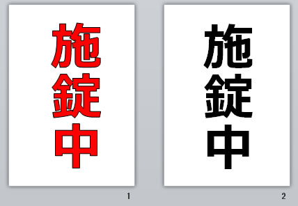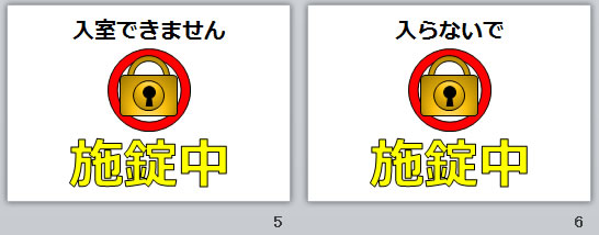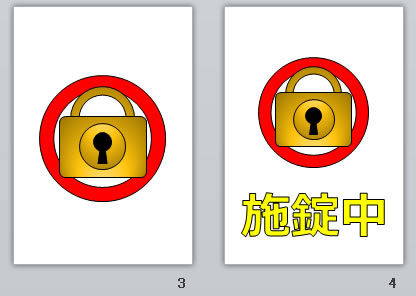 施錠中の貼り紙(パワーポイント)の使用例