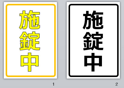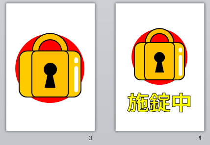「施錠中」の文字のみ、「施錠中」とアイコン表示などA4縦/横