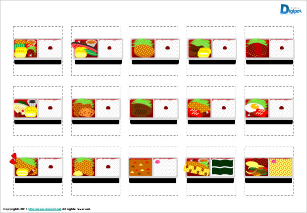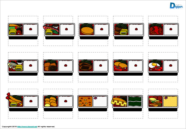 フリー、無料で使えるお弁当のイラスト画像です。PPTX形式、PNG形式画像で、縁取り有りと縁取り無しの2パターン作成しております。