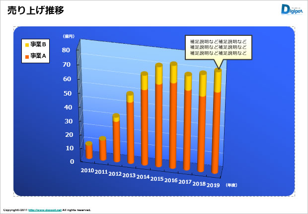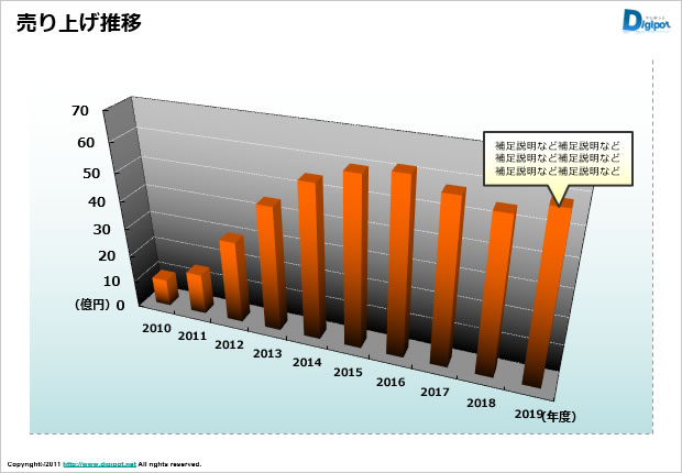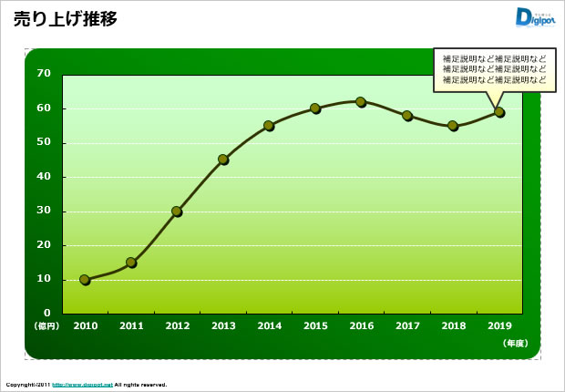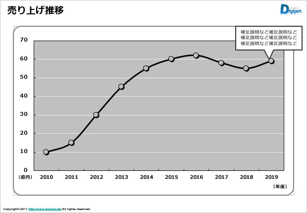 売り上げ推移グラフのサンプルテンプレート(パワーポイント)