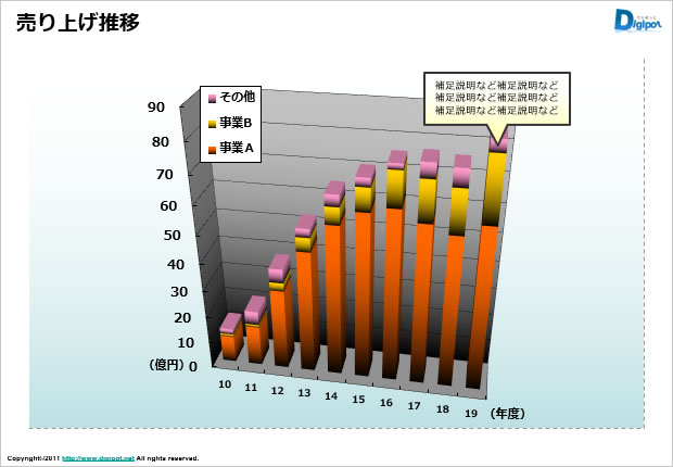 売り上げ推移のグラフサンプル(立体見下ろし)