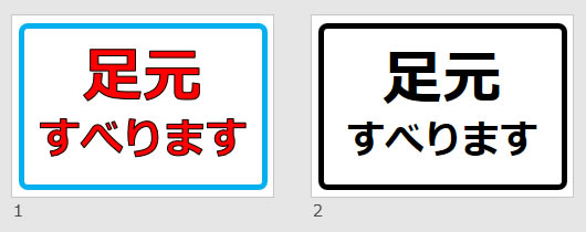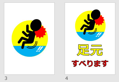 「足元すべります」の文字のみ、「足元すべります」とアイコン表示などA4縦/横