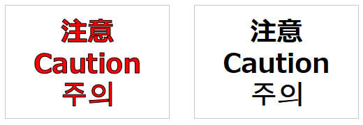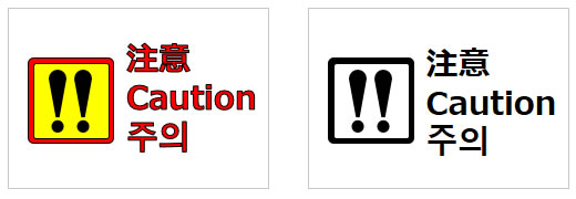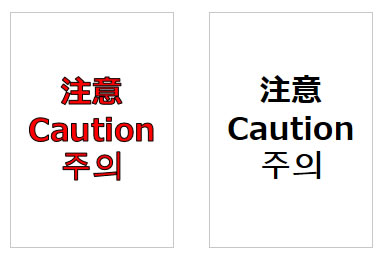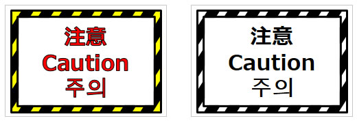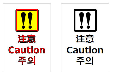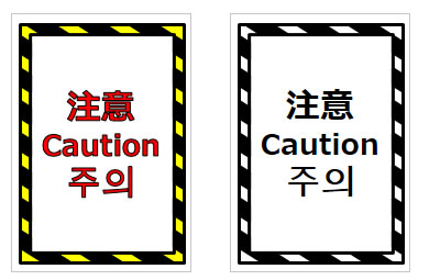 「注意(三か国語)」の文字のみ、「注意」とアイコン表示などA4縦/横