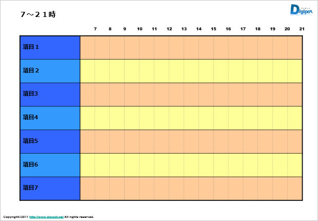 フリー、無料で使えるタイムテーブルのテンプレート画像です。パワーポイントPPTX形式で作成しています。
