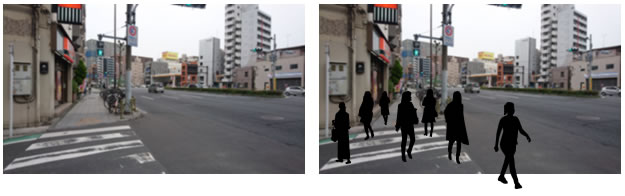 イラストだけでなく実写の背景にも違和感なく組み合わせることができます。