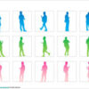 フリー、無料で使える歩きスマホする人のシルエット画像です。パワーポイントの図形機能で作成しています。PPTX形式、PNG形式画像で、白黒シルエットとカラーシルエットの2パターン作成しています。