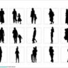 スマートフォンを操作する男性または女性のシルエット、立ち止まってスマホ操作するシルエット、立って操作、白黒、グラデーションなど30パターン。
