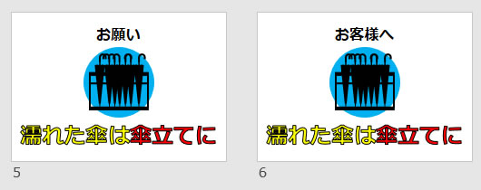 濡れた傘は傘立てにの貼り紙(パワーポイント)