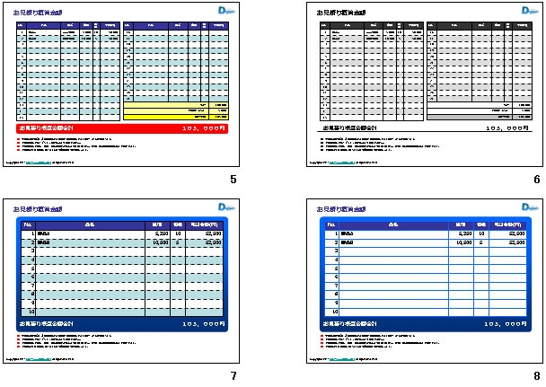 フリー、無料で使えるお見積概算テンプレートです。パワーポイント資料の中に、お見積概算を1枚挟み込むためのテンプレートです。エクセルシートなどからコピーする事もできますが、パワーポイント資料内に差し込むことを想定した概算見積テンプレートで、提案資料に自然に溶け込むデザインが特徴です。エクセルから数値や内訳をコピーして貼り付けることも可能ですが、見栄えを整えた状態で提示できるため顧客向けの初期提案に適しています。金額は手入力での調整が必要なため、誤入力防止のためのチェックや注釈欄を設ける運用を推奨します。複数案の比較表示や前提条件の明記欄を活用して交渉や社内承認をスムーズに進められます。