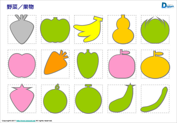 - 動物、野菜、果物の外形のシルエットイメージに