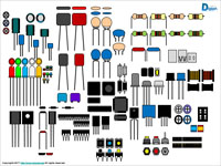 半導体、電子パーツ、抵抗器、IC、LSI、トランジスタ、LED、コンデンサ、ダイオード、上から見たバージョン、横から見たバージョン、フチ有フチ無しなど各種