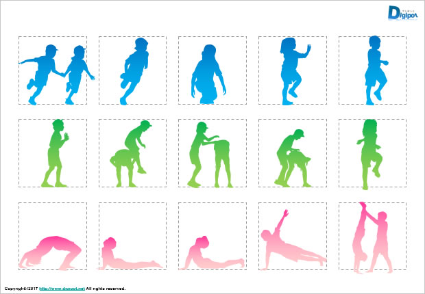 体育、運動する子供のシルエット(パワーポイント/PNG画像)