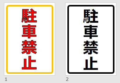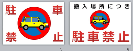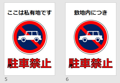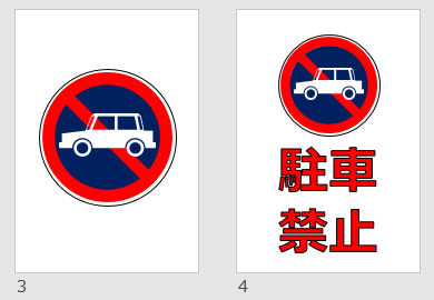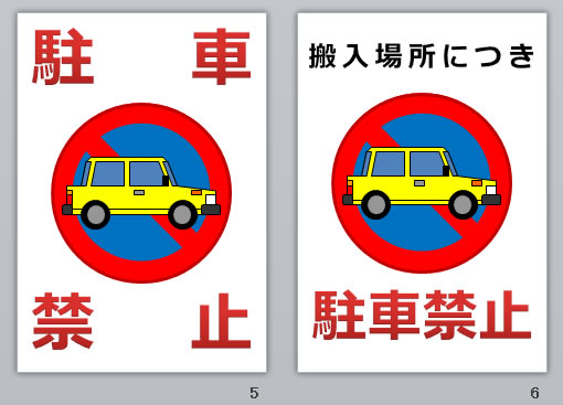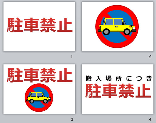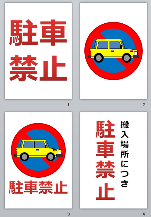 「駐車禁止」の文字のみ、「駐車禁止」とアイコン表示などA4縦/横