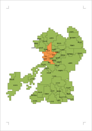 熊本県の市区町村をエリア分けした地図です。資料作成などにご活用ください。パワーポイントから出力したものですが、パーツ分けされているので、文字の編集などができます。