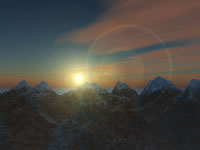 山から登る朝日、様々なシーンの日の出などCG各種15点。
