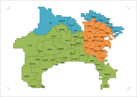 神奈川県の市区町村をエリア分けした地図です。資料作成などにご活用ください。パワーポイントから出力したものですが、パーツ分けされているので、文字の編集などができます。