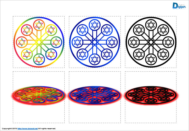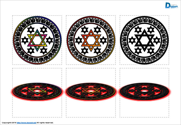 星型や数字などをあしらって魔法陣っぽい図形を作成しております。カラーバリエーションと画像エフェクトのバリエーションを用意しています。
