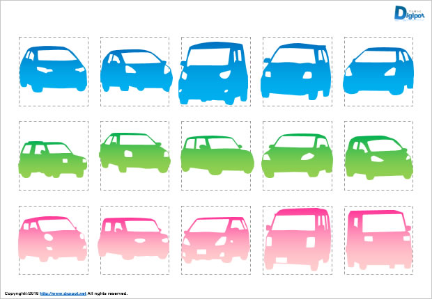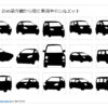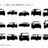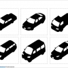 主に斜め前から見た車両のシルエット、軽自動車、コンパクトカー、セダンなど