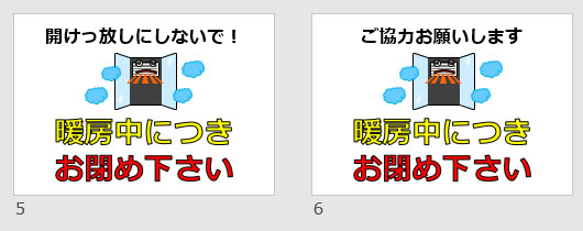 暖房中につきお閉め下さいの貼り紙(パワーポイント)