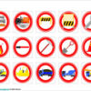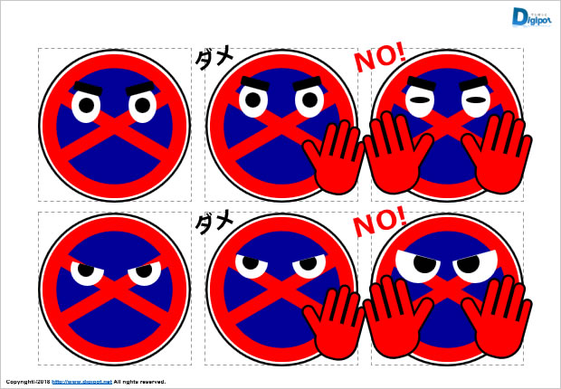 駐停車禁止マーク、文字入りの駐停車禁止マーク、擬人化・顔入りの駐停車禁止マークなど