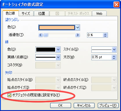 そしてOKする前に、オブジェクト規定値に設定するにチェックを入れます。これが、今後新規で作成した場合の図形スタイルとなります。