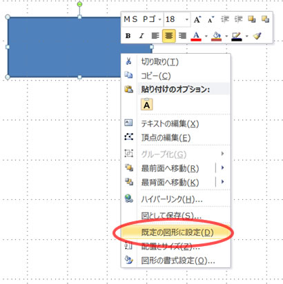 パワーポイント2010の場合も書式選択後に規定の図形に設定を選択することで、基準の描画スタイルを変更することができます。