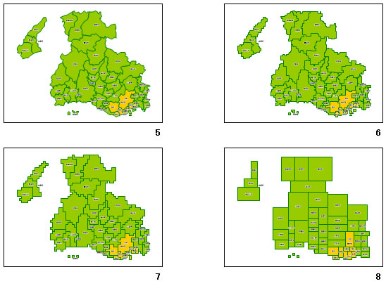 市区町村を境にした兵庫県地図。通常タイプ、グリッドタイプ(大中小)のそれぞれ通常、立体タイプの計8パターンを用意しています。