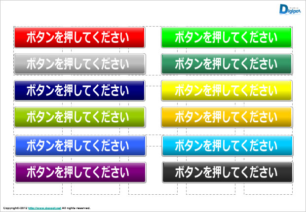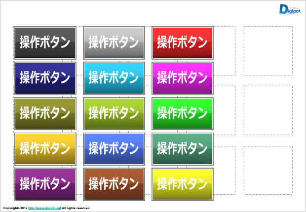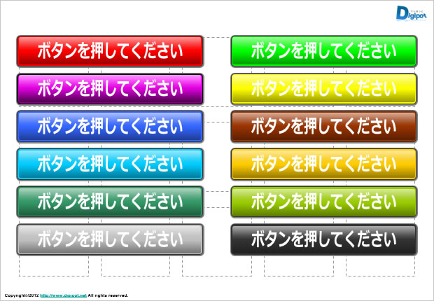 フリー、無料で使えるカラフルなボタンパーツ素材画像です。パワーポイントPPTX形式で作成しています。