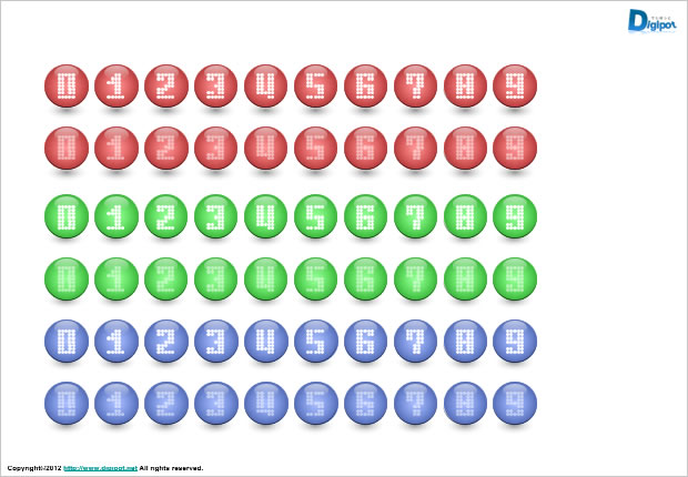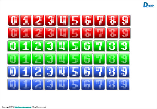 ドット形状などの各種数字です。ナンバリングの強調などの数字関連のパーツとしてご利用ください。