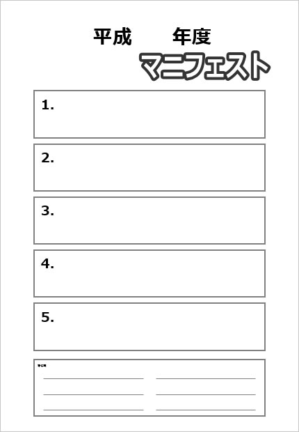 空白スペースなどには文字を入力したり印刷して手書きするなどの目標管理シート、マニュフェストシート、船中八作シートなど10パターン。