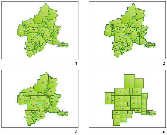 市区町村を境にした群馬県地図。通常タイプ、グリッドタイプ(大中小)のそれぞれ通常、立体タイプの計8パターンを用意しています。