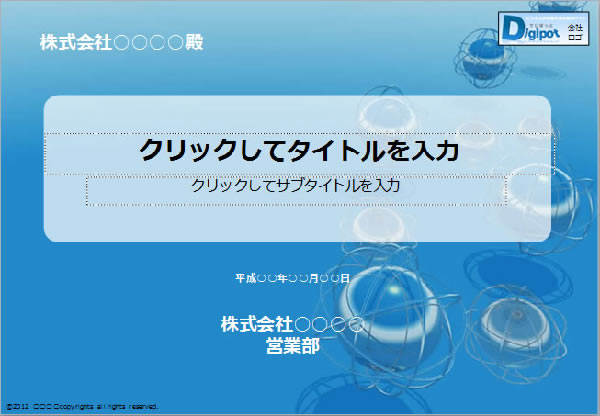 ネットワークをイメージしたパワーポイントのテンプレートファイル(pot形式)です。カラーバリエーションを6種類そろえております。大きな画像を2枚配置していますので、容量にご注意ください。また、ロゴやコピーライトなどは差し替えてご利用ください。