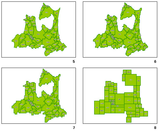 市区町村を境にした青森県地図。通常タイプ、グリッドタイプ(大中小)のそれぞれ通常、立体タイプの計8パターンを用意しています。