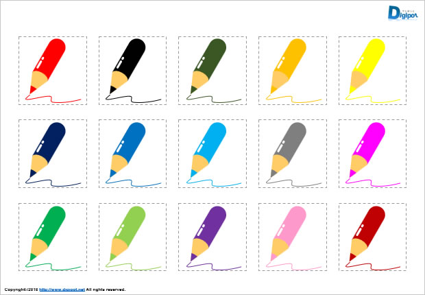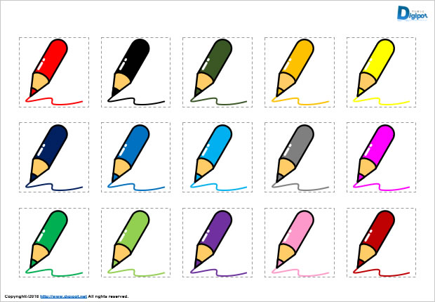色鉛筆各種、フチあり、フチなし、カラーバリエーションなど30種類のイラスト画像